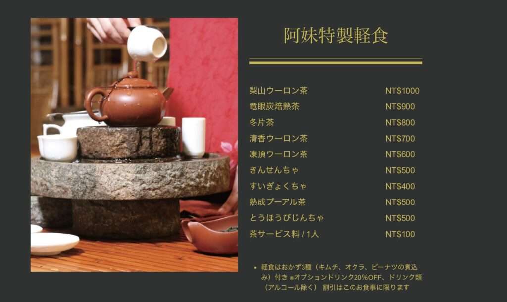 - 🔥 温かい台湾茶(茶芸体験あり)