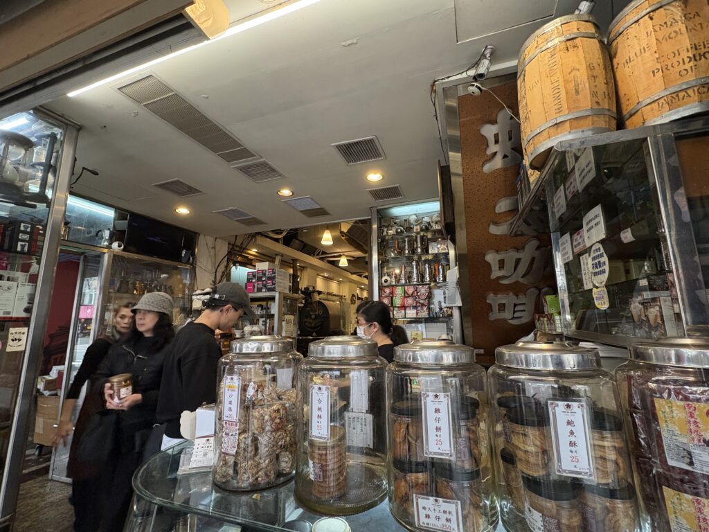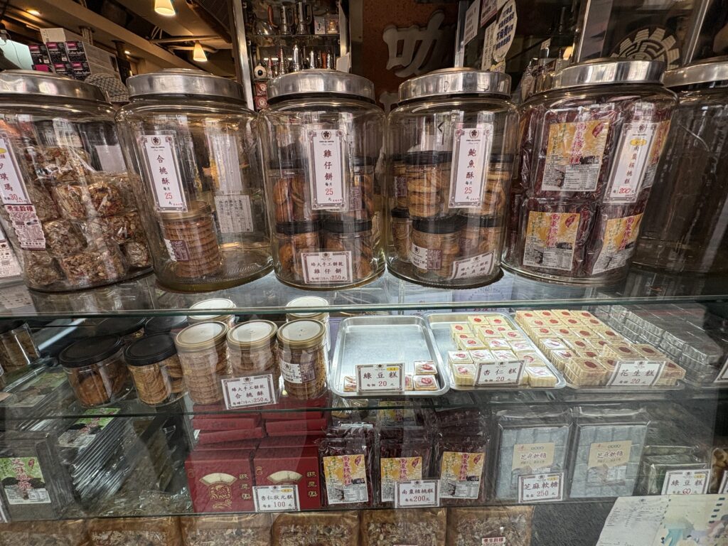 店頭の大きなガラス瓶に入った自家製のお菓子(クッキーや台湾の伝統的なお菓子)は、この店のもう一つの主役なんです。